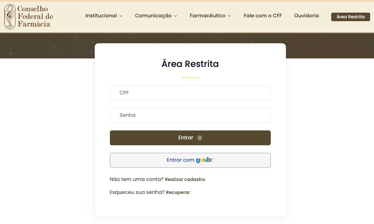 3. Entre com seu CPF e senha (também é possível acessar via gov.br). Caso não possua cadastro, clique em REALIZAR CADASTRO